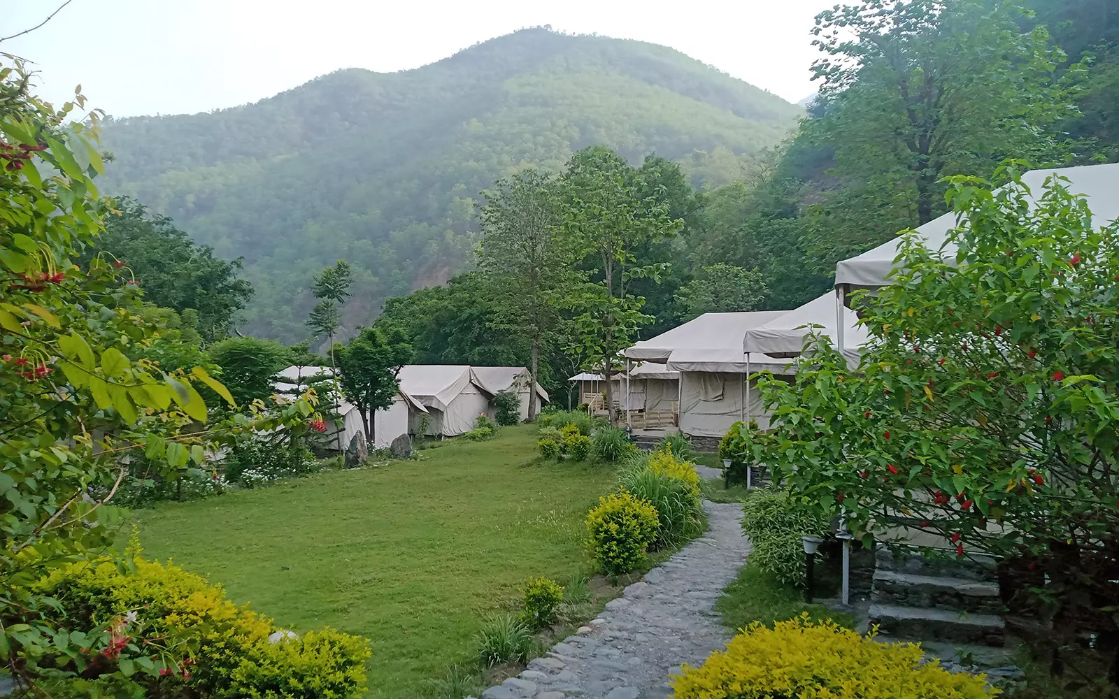 Though the stunning location and spiritual vibes makes the location perfect for yoga & meditation, this unique destination packs memorable experiences for one and all. There are many options for those who love the outdoors and outdoor activities. From white-water rafting, a lesson in kayaking, angling, body surfing, rock climbing and mountain biking to village walks, brief nature treks, birding and an exciting late-night leopard safari. One can also walk to a nearby pristine waterfall and enjoy a refreshing shower under the clean flowing mountain waters.